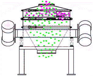 SYT系列三次元振動篩的基本原理是利用電機軸上下安裝的重錘(不平衡重錘),將電機的旋轉運動轉變為水平、垂直、傾斜的三次元運動,再把這個運動傳遞給篩面,使物料在篩面上做外擴漸開線運動,故該系列振動篩又被稱之為旋振篩。該系列振動篩具有物料運行的軌跡長,篩面利用率高等優點,調節上、下兩端重錘的相位角,可改變物料在篩面上的運動軌跡可以對物料進行精篩分、概率篩分等。